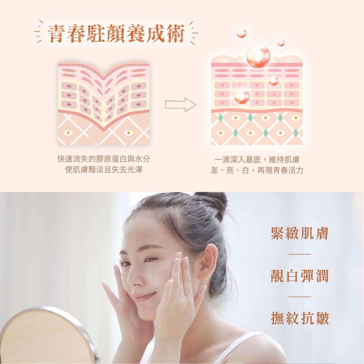 3大功效 : 緊緻肌膚、靚白彈潤、撫紋抗皺